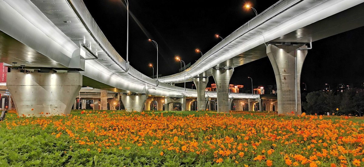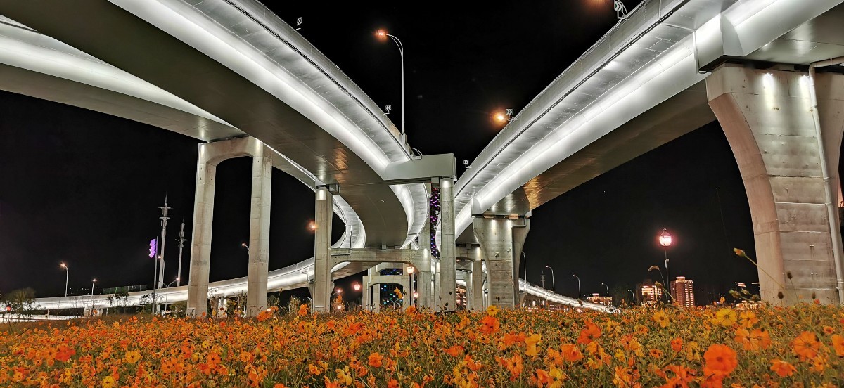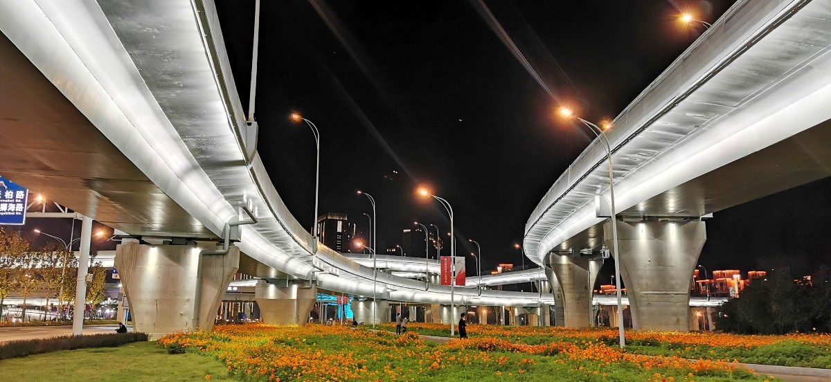军运会的武汉灿烂夺目,这是手机拍金银湖国家湿地公园附近的海口立交桥夜景,这几张照片视野有限,不能够将这座立交桥的 壮观气势表达完全