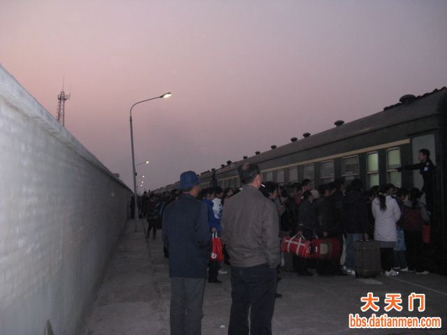下面是2009年春运N346天门5点半到汉口的盛况,当时上车去汉口的有大概500到1000人,在初五左右,但是最近几天我去看了下T6718就50到100个人去汉口,都初七了,早上5点半去汉口的人估计也不会很多,晚上去汉口的,我前几天去看了下,也不到100人了,2009年武汉铁路局专门跟天门留了一节车厢,从去年开始,武汉铁路局春运去汉口就没有跟天门预留车厢了,就几张票,根本是连站票都没有,我认识的人几乎都是坐汽车去的武汉,不过都是在天门站买的异地票在武汉转车的,不过晚上去成都方向的比较多,一般都在100人以上,这倒是比较欣慰的了,当然也有天门站现在一天有3趟车去汉口,车次分流的影响了。不过天门火车站春节卖火车票,5块的手续费都赚翻了,铁路部门也不会在乎天门的那几个汉口的短途了