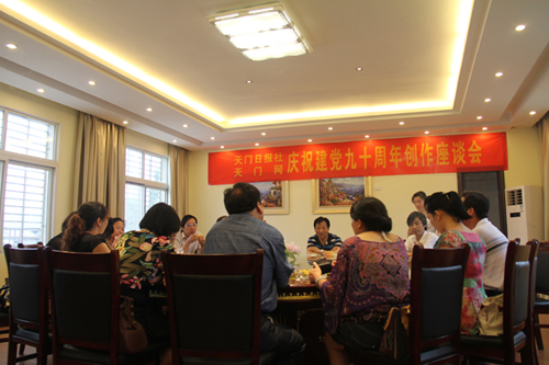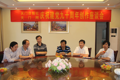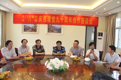 23日,由天门日报社、天门网主办的“庆祝建党九十周年创作座谈会”举行,来自市作协、文联、文学研究会等协会的20多位文朋诗友欢聚一堂,畅谈党的红色历史和伟大成就,并就庆祝建党九十周年文学作品创作、报网资源整合、网刊互动等进行了交流。