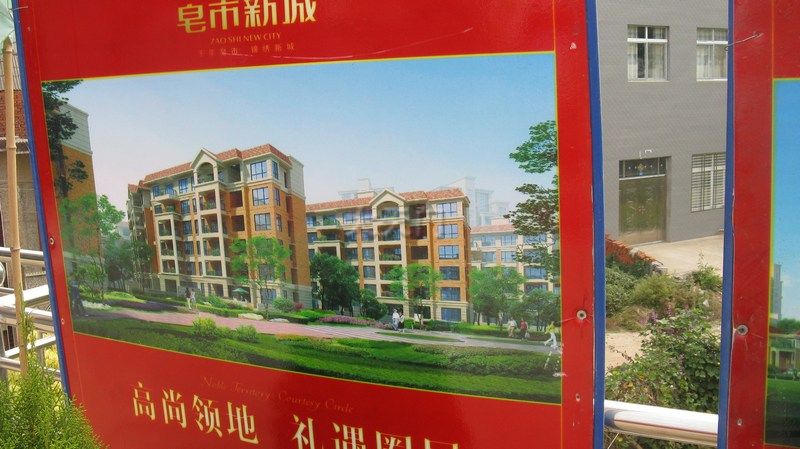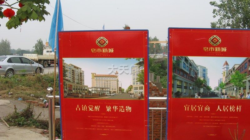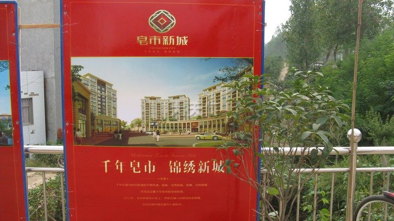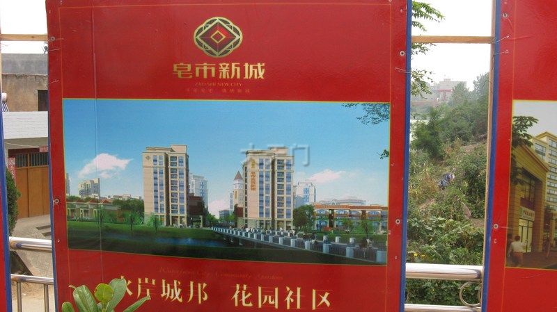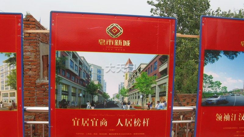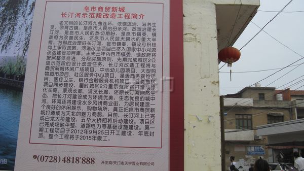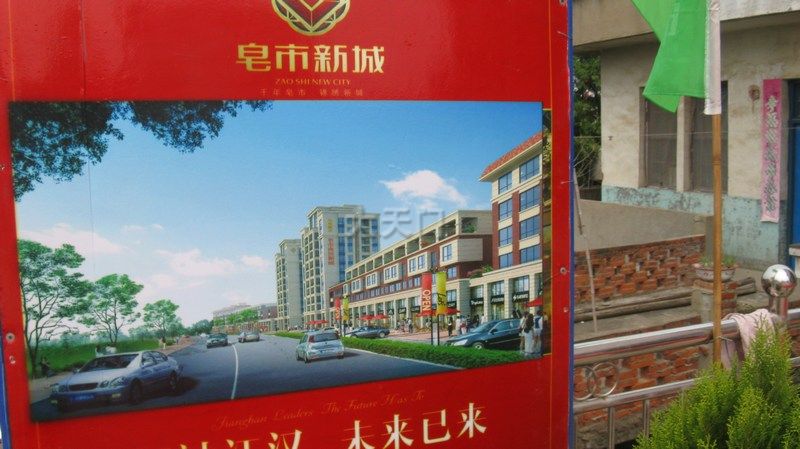 这是售楼部门口的宣传图,“千年皂市,锦绣新城”的宣传语。
