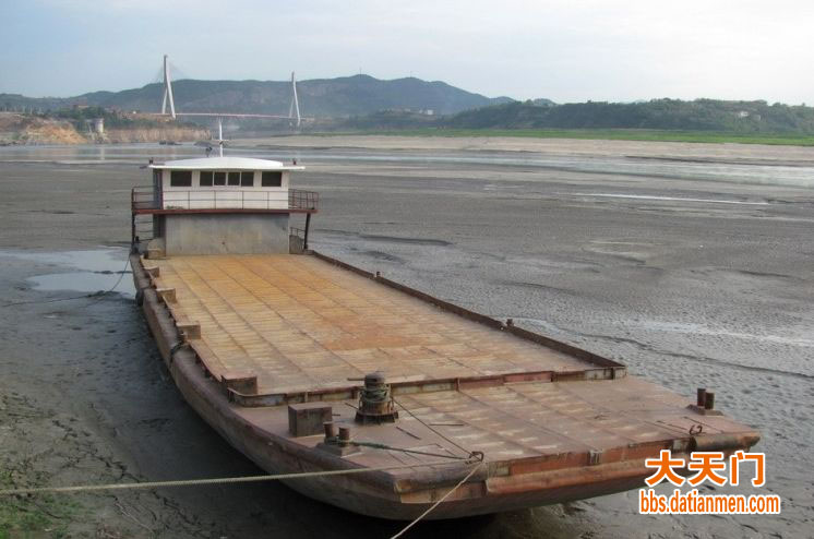 5月15日,湖北省十堰市郧县境内汉江段受持续干旱的影响,大面积河床裸露,导致货船搁浅。据郧县水文监测站数据显示,截至15日12时,汉江水位降至136.78米,低于历史同期水位,且仍在下降中。新华社发(曹忠宏 摄)