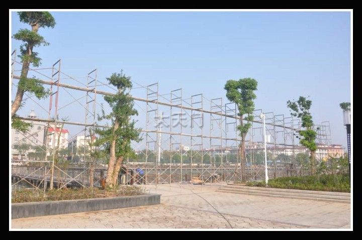 到,到处是工人忙碌的身影。在湖心岛看到,三个地面焰火发射平台和一个高架焰火发射架已经搭建成功,明天晚上7 :30,璀璨的焰火将从这里腾空而起。