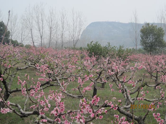 上周和开哥去京山没找到大片桃园,开哥很遗憾,我想到天门附近找找看,于是骑车出去转了转,到佛子山下时,真的发现了大片桃园。