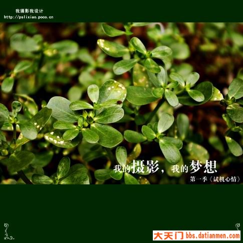终于有了自已的相机!!!梦想实现!!!平时忙于工作室事务没时间,现在是谈季,终于有时间可以好好的拍一些我想拍的PP了!在影楼行业已做了好多年了,一真都是数码设计,懂一点点,没有拍照经验的我只能看着朋友们拍出不错的照片!现在让我来拍拍,来感受,来到摄影这个让我想了好多年的梦想世界里,把一切想拍的都纪录下来!因为,我心里永远有一个关于我摄影我设计梦!我喜欢设计摄影,我一直坚信如果我付出努力,总有一天我会丰收的!这是第一次用自已的相机试拍,希望朋友们能留下您的宝贵意见!我会继续学习!争取拍出好的作品!让我们共同学习进步!!谢谢!!!