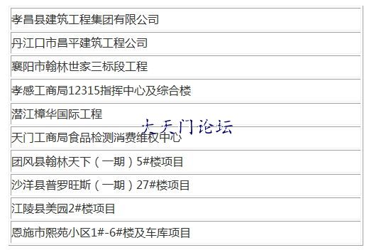 另外3起分别为黄冈中职学校实习工厂项目、荆州市楚天佳园C区29#楼项目、恩施州恩施市晨曦大厦工程。