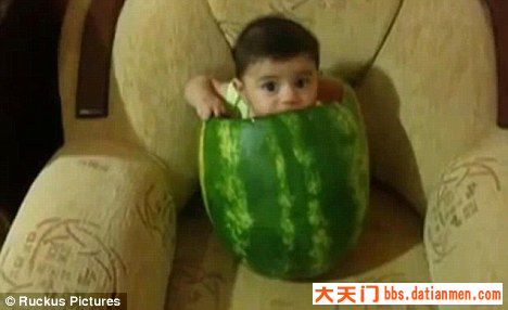 第一次坐在西瓜里啃西瓜