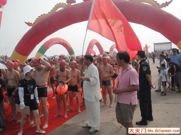 8月8日是全民健身日,省十三运会组委会在荆门举行的2010“迎省运.横渡漳河”全国邀请活动取得圆满成功。天门飞鱼冬泳队有24名队员、天门市多宝湾冬泳队有22名队员参加横渡了3000米的漳河,全部横渡成功。这次邀请活动有来自全国的47支代表队,下水队员1500名,规模盛大、气势磅礴。其中有一位西班牙朋友:麦克,36岁,是西班牙图片社驻华摄影师,业余游泳高手。请你分享PP
