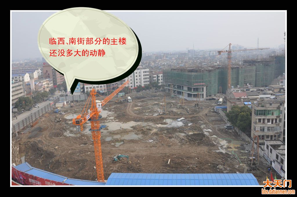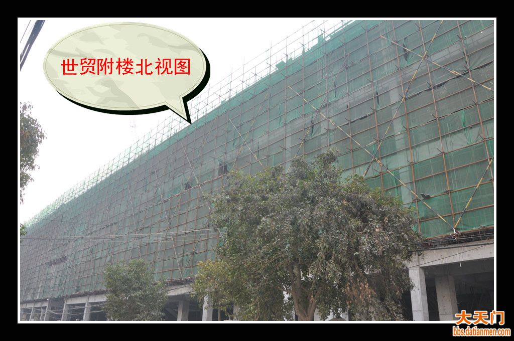 人们盼望已久的世贸已经出现了热火朝天的建设景象,东北部的附楼(况且叫它附楼吧,其实还不知改名没有)年前已经封顶,现在在顶部进行基础设施建设;地下车库应该建设好了,西南面临街部分还没有动工,不过塔吊已经安装起来了,看来主体楼差不多要开工了,我们翅首以盼吧!