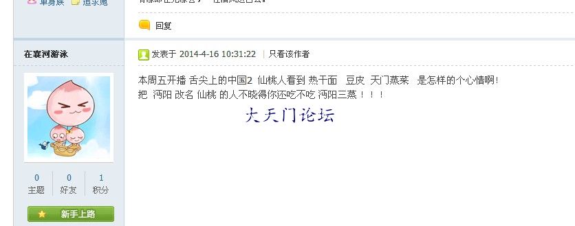 惊悉5月9号天门蒸菜要上《舌尖2》,我那个激动啊。先是在QQ大楚网上看到这个消息后,发现一些仙桃籍人员在发牢骚,认为明明是“绵羊三蒸”,oh,sorry,是“沔阳三蒸菜”。我突然发出了一丝诡异的快感,然后跑到仙桃论坛上去看大家的反应,果然沔阳老乡都受不了了,哇哇大叫。先截取一部分言论,供大家感受感受。