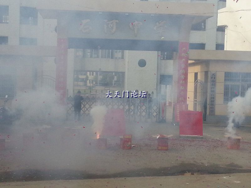 学生家长放鞭炮对学校取得的骄人成绩表示祝贺