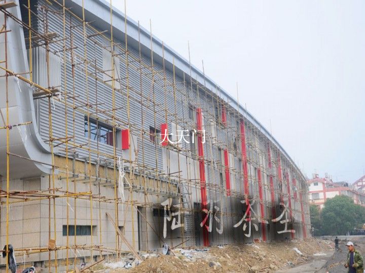 天门游泳馆座落在体育馆的南侧,紧邻蒸菜街,现已进入外墙装修阶段。在现场看到,游泳馆西外墙已装修完毕,南边也进入尾声。走入游泳馆内部,眼前霍然开朗,一个标准和游泳池展现在我们眼前。室内正在进行设备安装,据该项目的负责人介绍,游泳馆和田赛场地今年年底前一定的峻工,主体育馆明年还需要一段时间建设。我们将试目以待。
