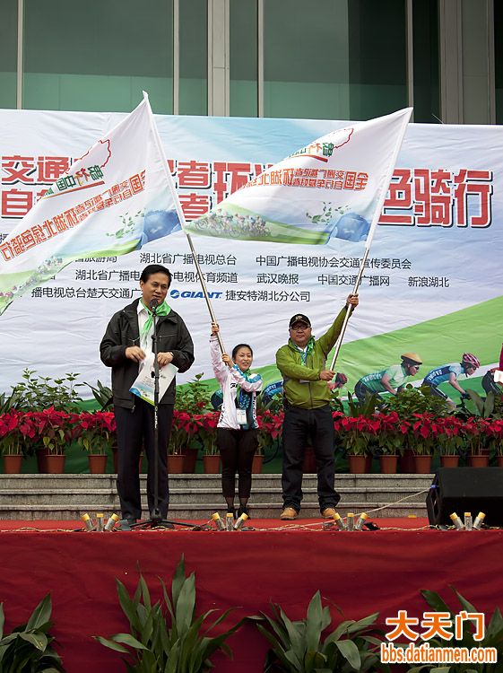畅行中国,精彩湖北——全国自行车爱好者环湖北绿色骑游活动 第一天,来自全国各地的车友齐聚武汉共襄盛举。上午8点30分,大家来到了洪山礼堂参加活动的发车仪式。同时来自全国各地的记者也将全程随车队出发,全程相伴