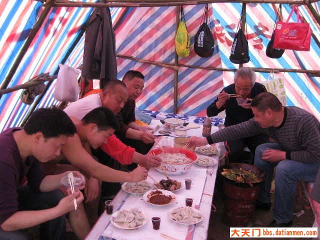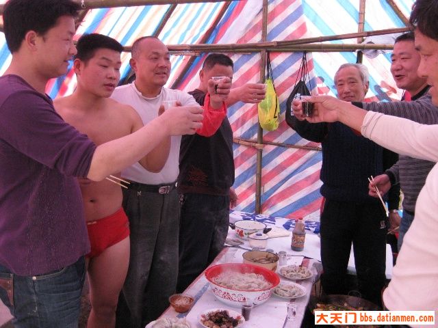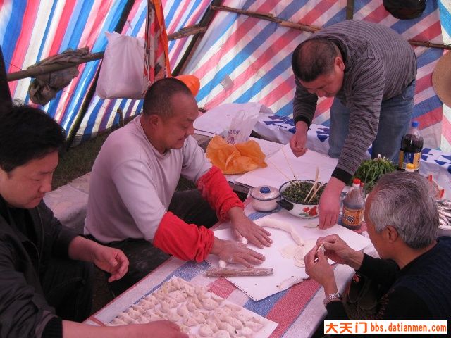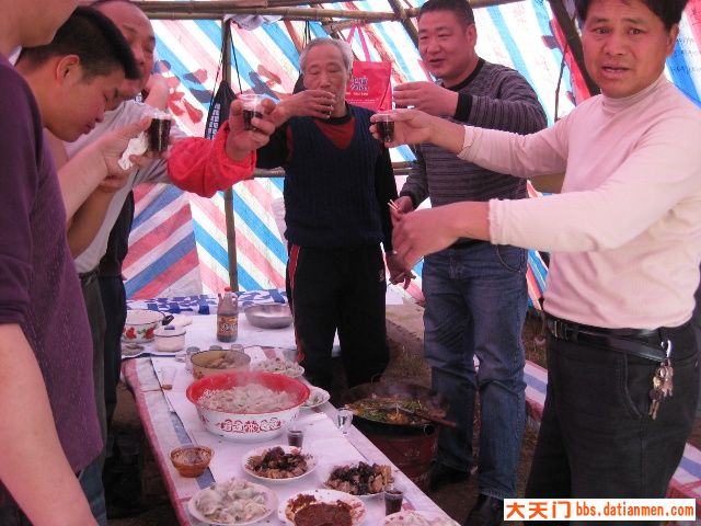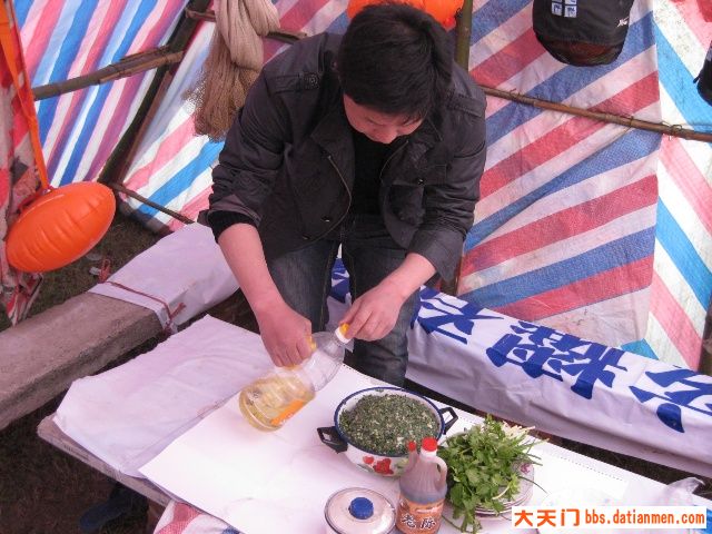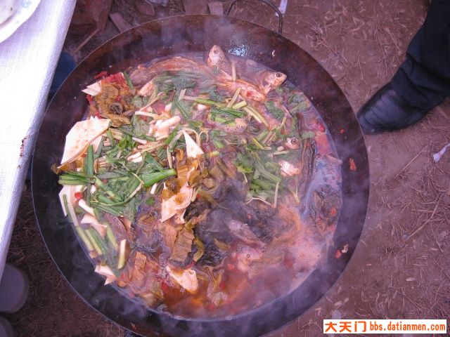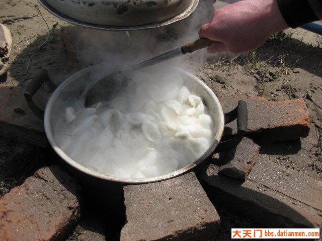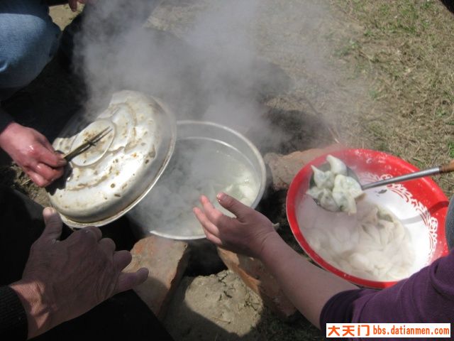 三月十六日,晴空万里,艳阳普照。不少队员很早来到基地,有的拾柴禾,有的搞卫生,有的提水、有的挖菜.......热情特高。牛帅哥玉波为迎接新队员玩起了连续后空翻、侧身翻,为基地添了一道别致的“风景”。最辛苦的是秘书长老杨,理菜、剁馅、调味、合面、杆皮,一人包干,他可是冬泳队的名厨,任劳任怨,热心快肠,让人感动。由于今天南风较大,风沙直往锅里刮,野韮菜粏粑粑、凉拌菜临时取消,加了一个刚从汉江里用撒网打的小喜头鱼做的酸菜鱼火锅。众人拾柴火焰高,不一会,饺子、酸菜鱼火锅等摆满了基地“餐桌”,队员们围着自做的“佳肴”,开怀享用。当然味道好极了。与您分享。