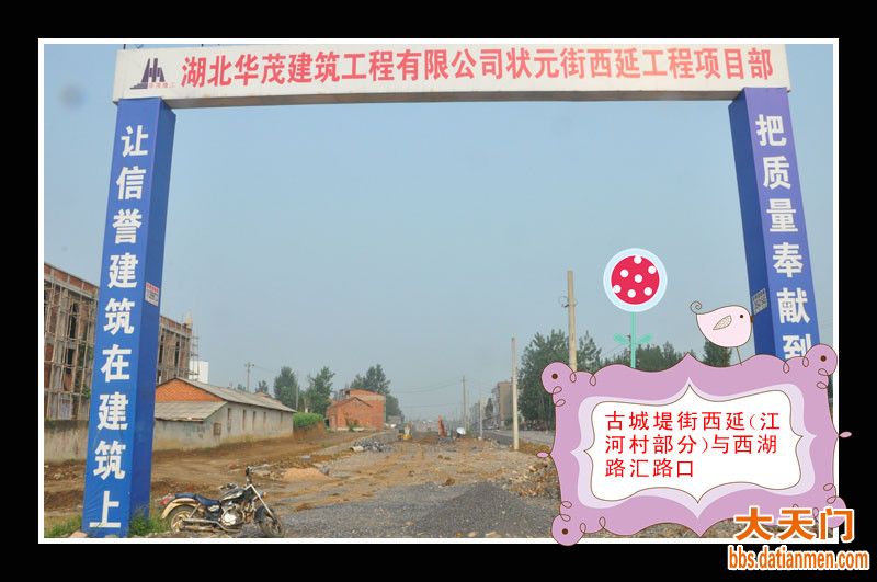 位于陆羽广场南端的古城堤街(原名状元街),是连接鸿渐路与西寺路的一条路。三十年前,这里是一道古城堤,陆羽广场修建后,这里也随之修建了一条街,命名为状元街。去年将天门中学、天门河二桥这段路更名为状元路之后,这条街还名为古城堤街。今年,这条街向西延伸了,横穿西湖、江河村、西龙村,直达状元街。下面是正在修建中的古城堤街图片。