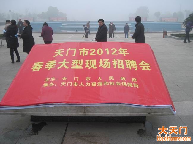 2012年元月31号,天门市2012年春节大型现场招聘会在广场举行。早晨八点,广场上就挤满了参加招聘会的车辆和求职的人们。