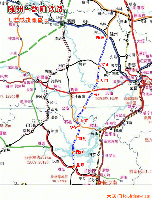 还是争取随岳铁路最好,这样天门的利益会最大化,在现在的天门火车站和长荆交叉,经过天门最中心城区,在仙北火车站和现在的汉宜交叉再到岳阳,而且是最直的线路,可惜荆州先把荆岳大桥修了,不过什么铁路先立项了再说