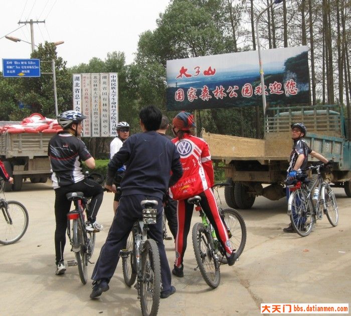 七点零六分出发。一行十人:会长为堂,烟兵,刚哥,开哥,唐局,郭伯,方把,还有三个不知名的帅小伙。东方临时有事不能同行了。最后一个就是减肥哥我了。此次骑行距离七十公里。从天门出发,途经佛子山,雁门口,易家岭,五三,终点太子山国家森林公园。了解到第一次远行的除了我,还有唐局和另三个帅哥。