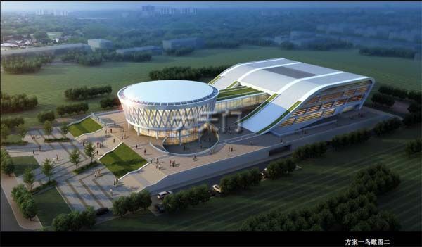 3.坡地与青少年宫屋顶顺势相接,形成舒展大气的整体式造型,两馆采用连廊相通,相互衬托、穿插咬合,成为一个有机的整体。