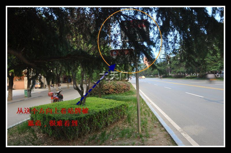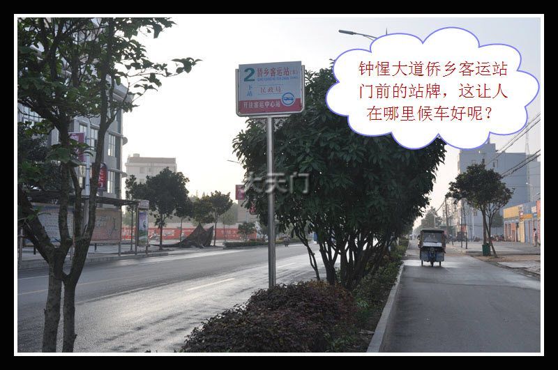 最近网友们对天门公交的不给力有很多微词,最近我发现天门公交除了线路不给力、工作时间不给力、数量不给力外,站牌的布局也极不给力。其他城市的公交站牌都有遮雨棚,候车座位,专用的候车台,而我们天门的公交站牌有很多竟然插在路边花坛上,人多的地方,人们就站在花坛上候车,花坛上的花草已被践踏致死,不站在花坛上吧,花坛两边都有车,叫候车的人们左右为难,请问:站牌插在花坛上好吗?请有关单位做做好事,给候车的人们一个安全的地方侯车吧!
