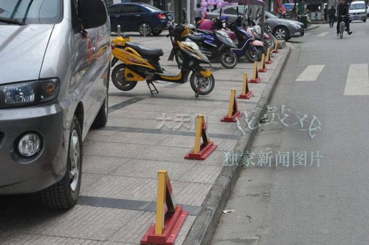 在元春路上,部分商家为了阻止车辆停在他们的门前,在门前人行道上安装了车障器,虽然方便了他们自己,但行人在这里行走时却不甚方便了,另外,这车障器安放在哪,犹是大刹城市风景。人行道是公用设施,请问:他们有权这样做吗?