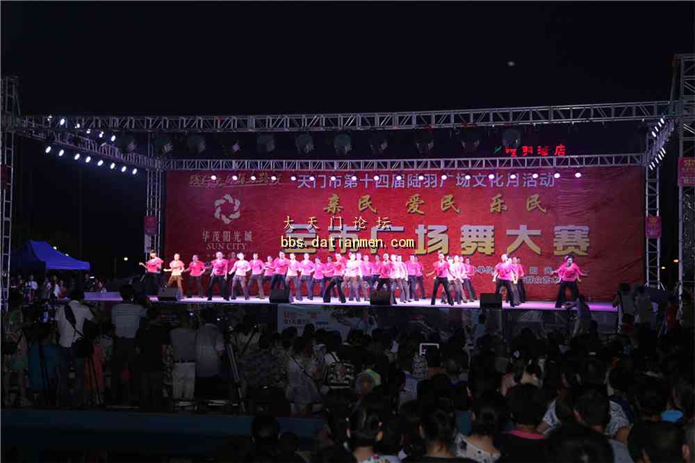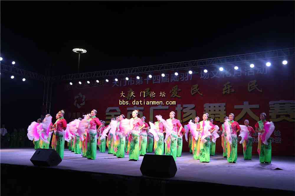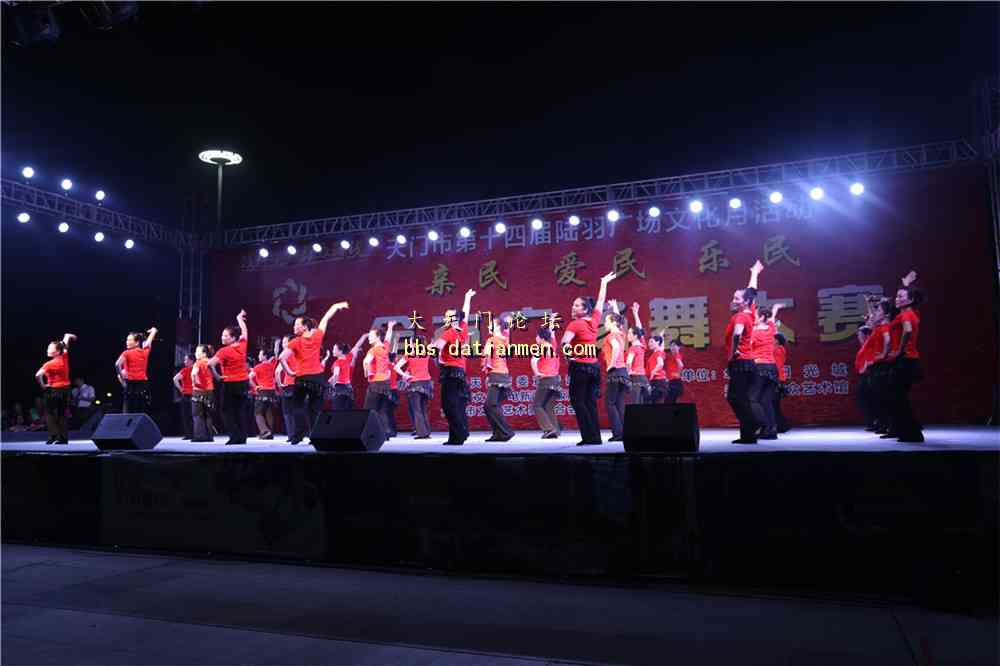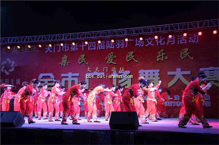 7月10日,陆羽广场文化月之全市广场舞大赛继续在陆羽广场开赛。全市各乡镇代表队的激情表演给现场的市民群众们带去了欢声和笑语。 开赛。 人山人海。 侧面剪影 好喜庆啊!主持人现场播报比赛分数。台下热闹非凡。 服装艳丽。精彩异常 动作整齐划一最终得分可想而知。又一支队伍。参赛者激情洋溢。一颗年轻的心。这个曲子是张灯结彩?