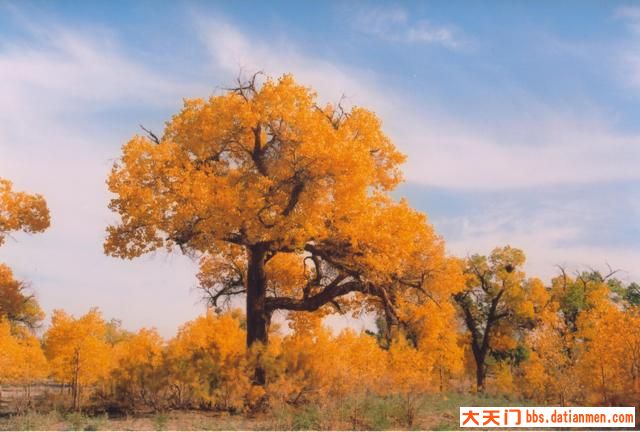 站在金色胡杨下,看透蓝色的天际,是那么美丽那么令人心颤。我想,那是因为我们所站的这片土地,离太阳越来越近了。