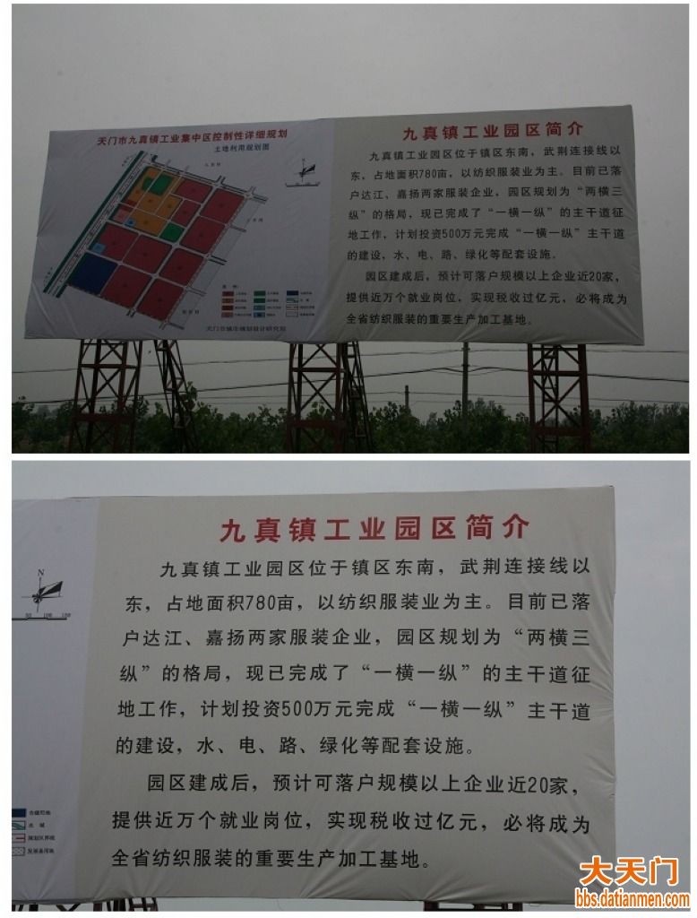 因代理张小成起诉天门市国土资源局不依法答复信息公开一案,今天早上从武汉赶到天门法院立案庭立案。上午从仙桃进入天仙公路,下午再从武荆连接线进入武荆高速离开天门,短短的几十公里内,看到刚刚耸立的三个工业园大型规划广告牌竖立在公路边,分别是横林工业园、小板工业园、九真工业园。