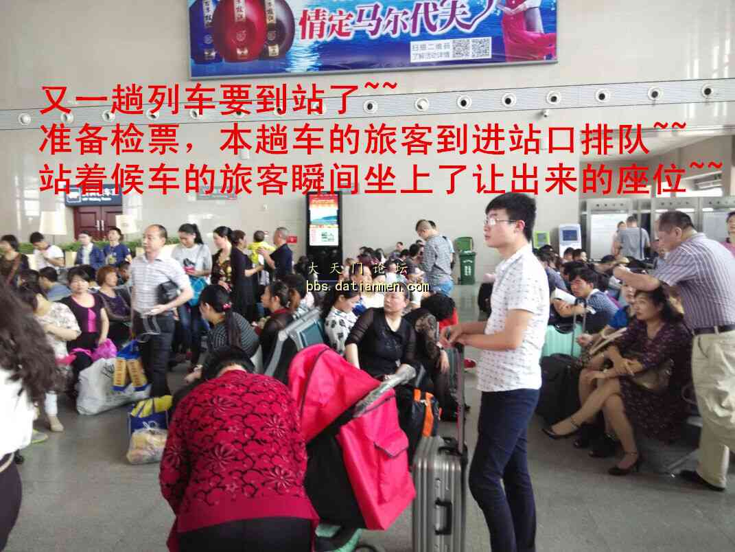 因事回天门后,5月6日从天门南出发~~不在五一小长假,不在周末凑热闹~~随机坐169到天门南,买张票进去候车~~候车厅是不是太小了?天门城区出发,到天门南的169,我是站过来了,到候车厅可真想找个座位坐坐~~没有哦!自从有了这个贯通东西,能达南北的动车线路,改变人们出行方式的影响力太大了~~高科技带来了生活高品质,高配套是不是也应该跟上高科技发展才行?扩建天门南,势在必行~~天门何时才能不这么拥挤?