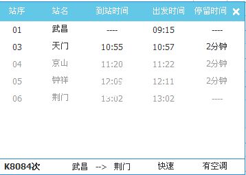 K8084现在改时间提前到9点15分发车了,非常适合乘坐普通车的天门老乡换乘了,比汽车便宜多了,而且天门南站的动车最早是中午12点多,虽然地铁现在通了,但是转车也是很麻烦的,所以这趟车,其实也是个不错的选择。