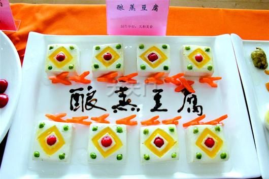 酿蒸适用于筵席上比较高档的菜肴,它是指原料镶在番茄、苹果、辣椒等里面蒸熟的方法。