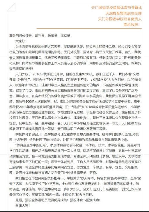 隆重盛大,天门外国语学校首届体育节开幕式掠影