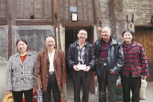 图为:王德友(中)和哥嫂(右一右二)等亲友合影