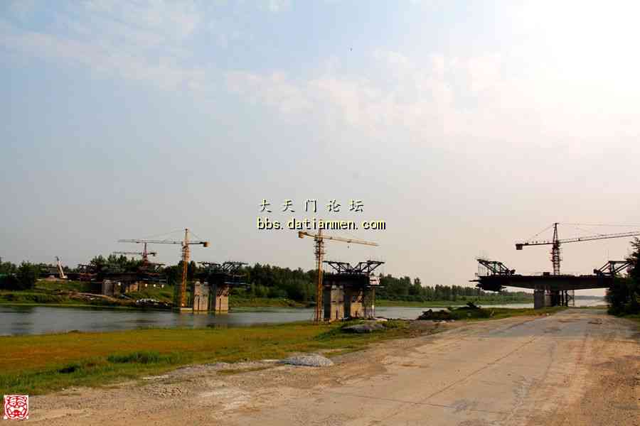 汉北河上,波光粼粼;两岸河堤上,吊臂高耸,机声隆隆,竟陵大桥正在紧张建设中。 竟陵大桥跨越汉北河,位于老龙堤下游1.5km处,桥两端分别是竟陵耀星村与石河李嘴村,是我市内河最大桥梁,总长700米,宽24.5米,设计为双向四车道。该工程是皂毛公路竟陵至岳口段改建工程项目的一部分,将通过正在建设中的环北路贯通武荆高速公路连接线至大天公路。大桥建成后将构成我市新的环城交通路网,进一步缓解新老城区的交通压力。