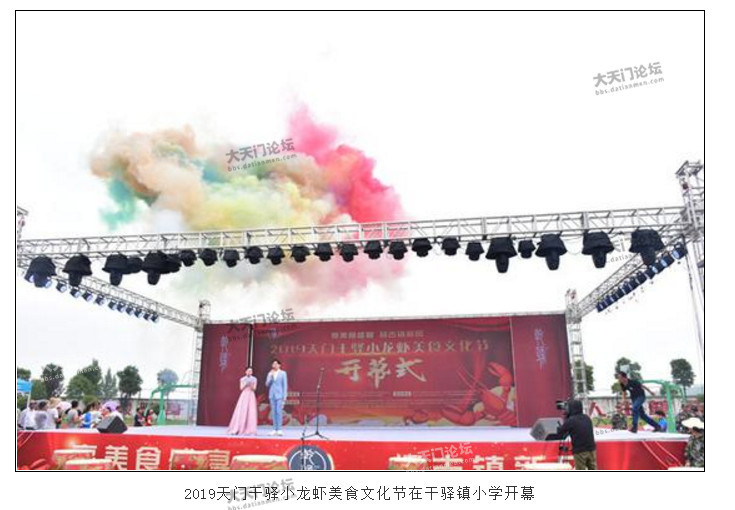 当天下午,还举办了天门市小龙虾产业发展论坛、天门市绿水青山小龙虾生态园观摩会、天门市惠民文艺演出、干驿镇优秀企业产品展销会等系列节会活动。