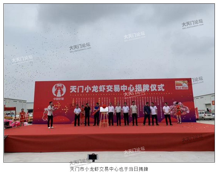 当天,除了在干驿镇举行的小龙虾美食文化节活动,在小板镇,天门市小龙虾交易中心也正式揭牌。