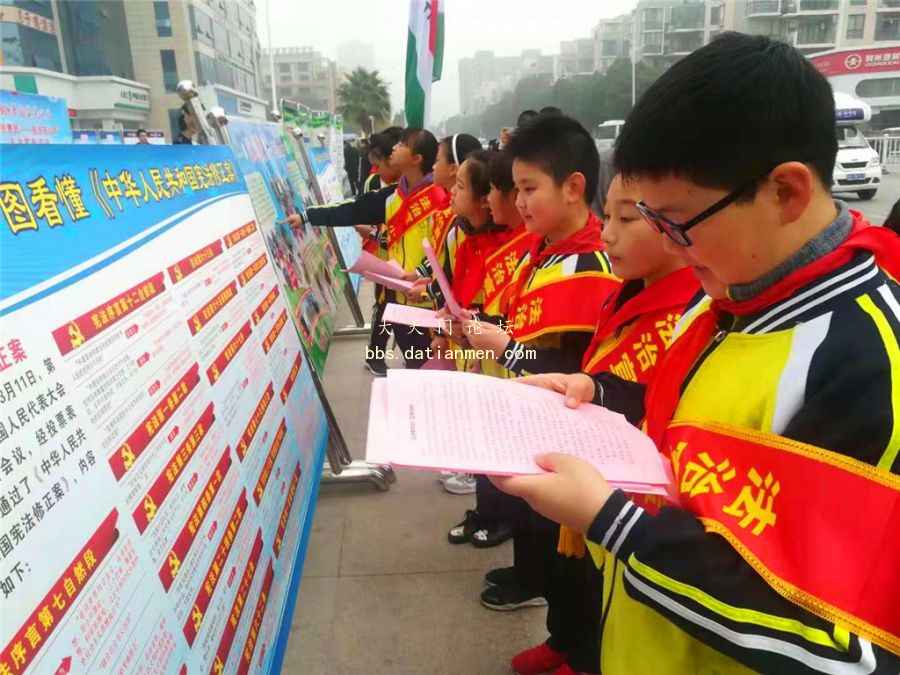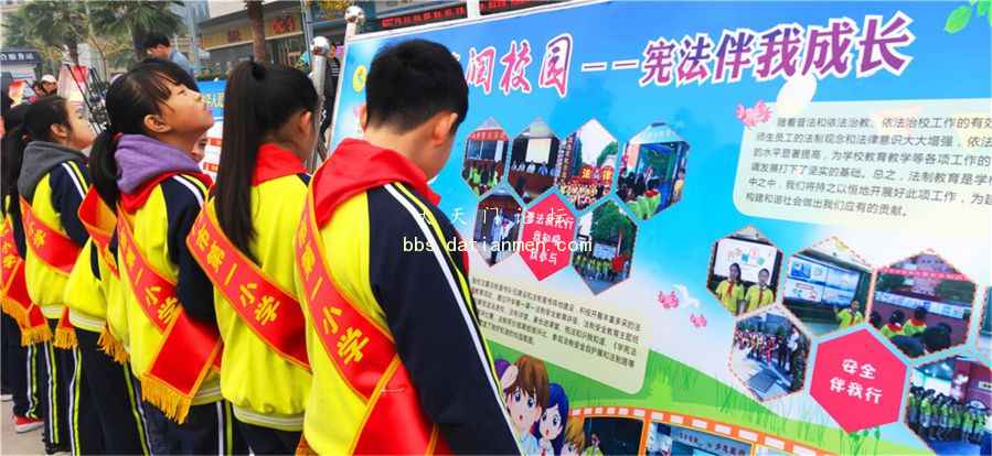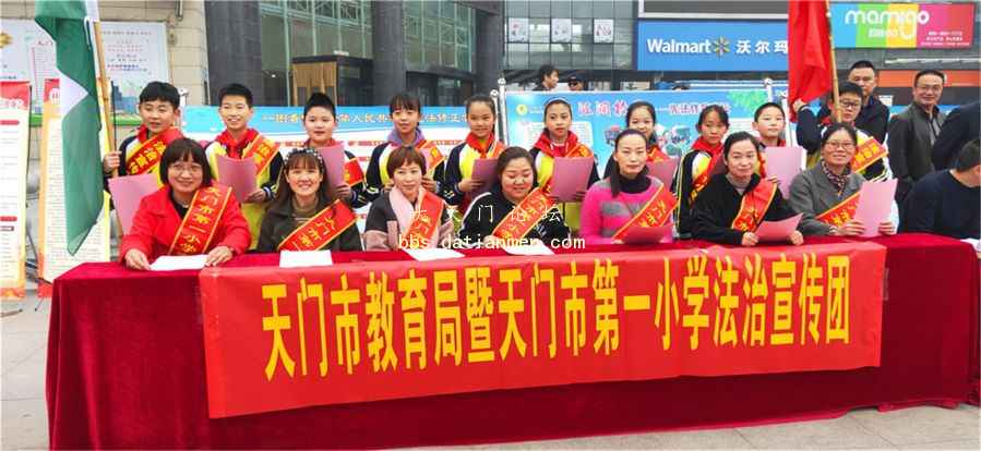 12月1日上午, 在第五个“国家宪法日”到来之际,天门市笫一小学在新城CBD沃尔玛门前参加开展“法治惠民---宪法在心中” 为主题的法治宣传系列活动。在市教育局安法办主任龚春霞与一小校长高丙元带领全体校领导与少先队志愿者及家长志愿者代表,早晨7:30分,来到指定的地点开展有关义务教育及税法等方面的知识宣传;很快吸引了众多市民驻足观看, 其场面热闹非凡, 人头攒动, 前来咨询的人络绎不绝。学校领导与学生志愿者及家长志愿者们, 现场为南来北往的市民们耐心细致的进行了“七五”普法知识宣讲,详细说明和解释了咨询的有关法律问题,还向他们赠送发放了宣传资料。科学引导学生与市民们学习宪法, 了解宪法, 感悟宪法精神, 整过上午忙得不亦乐乎。 在活动期间, 市政协副主席谢顺华, 司法局局长李靖等领导莅临该展台现场指导并慰问看望志愿者们, 市电视台专访了一小红领巾志愿者与辣志愿者们。特别感人的画面是, 一幼小的观众随弯腰的妈妈一起仔细阅读法律知识的场景,迎得了众多媒体与市民们抢拍此镜头 。 此次活动以学习贯彻党的十九大精神维护宪法权威,旨在进一步学习宣传党的十九大精神,提高全民宪法意识,弘扬宪法精神,维护宪法权威,在全社会营造尊法学法守法用法浓厚氛围。