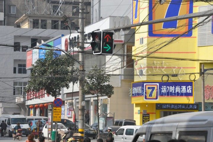实际情况是因为人民大道上从东到西的灯是常绿灯,在船闸路从北到南骑车上班的人,只能等人民大道上从东到西的左转弯灯亮后向南走,这势必会与人民大道上的车(从东到西)相遇,每天交警在这里指挥,要骑车上班的人右转弯,现在中央政府都提倡以人为本,试问:是灯为人服务?还是人应该绕灯转圈?由于人民大道从东到西一直是绿灯,所以人民大道上虽然设有斑马线,实际上是一种摆设,没有实际意义,过马路的人还是在车流中穿行。
