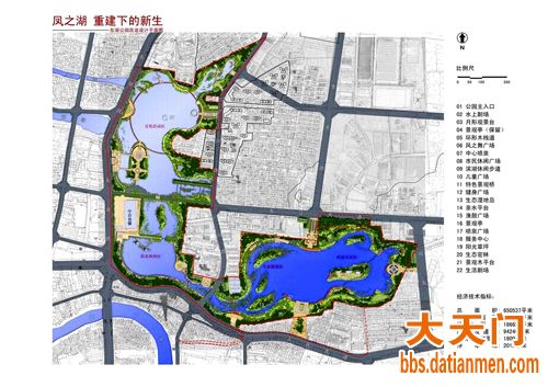 按照方案设计,东湖公园的改造将由北、东、西三块水面构成,拆除阻路,使一直以来的三片水域贯通起来,规划了文化活动、滨水休闲、生态湿地、时尚生活四个区域,显现“L“型。