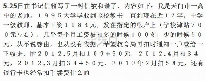 天门的高中老师基本工资确实只这一点,不过楼主投诉被和谐是正常的,你看一下编号公布出来的有几个?我们的张书记看后又有何感想?