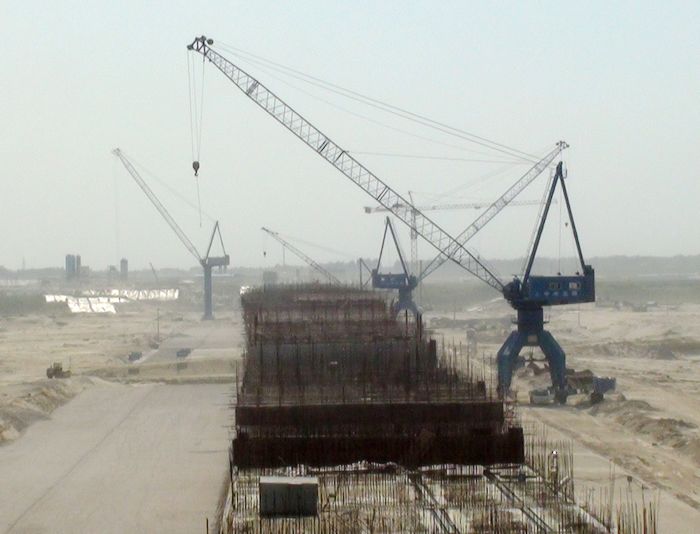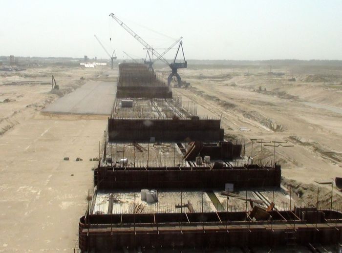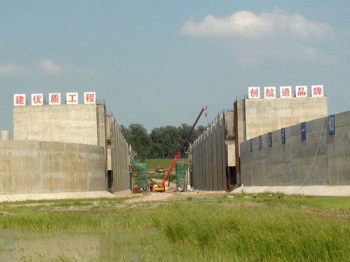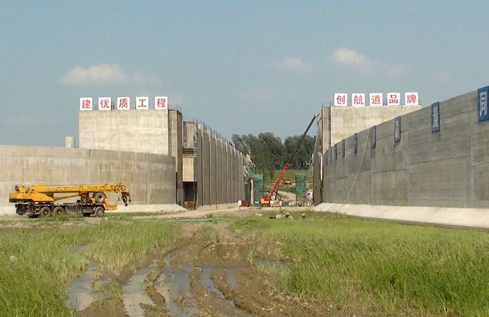 2、“引江济汉”工程是南水北调中线一期工程汉江中下游治理工程之一,是从长江荆江河段引水至汉江兴隆河段的大型输水工程。2010年3月26日, 引江济汉工程开工建设。 该工程渠首位于荆州市龙州垸长江左岸江边,线路沿北东向穿荆江大堤,在潜江市高石碑镇北穿汉江干堤入汉江,线路全长67.23公里。工程任务是向汉江兴隆以下河段补充因南水北调一期工程调水而减少的水量,改善该河段的生态、灌溉、供水、航运用水条件,供水范围为汉江兴隆断面以下的干流河段和东荆河供水区。该工程建成后,还可缩短长江荆州段至汉江潜江段航程600多公里,是湖北省最大的水资源配置工程,也是中国现代最大的人工运河。