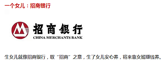 养一个女儿是招行,,养一个儿子是建行,太搞笑了