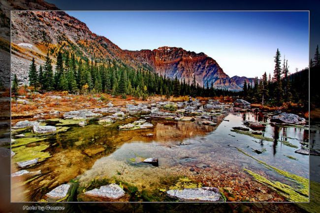 这次进山是爱城中文网摄影版的活动,4部车10人(3个版主,5个摄友,一对拍婚纱的新人),5天4夜,行程2000多公里,足迹遍落基山3个国家公园,得《山林秋色篇》、《湖光山色篇》、《红山头篇》、《瀑布流泉篇》,还有婚纱、花絮等等不便公开。我将在每篇中选几张与大家分享。。。