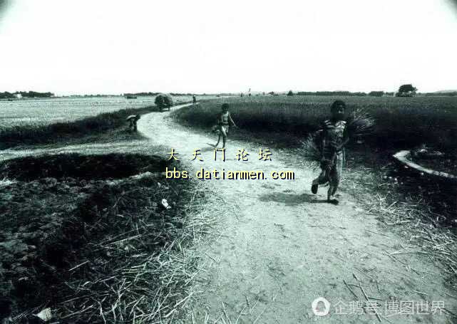 这个老爷爷更忙,一边抱着麦场要用的农具,还要这样背上小孙子。即是这样心中同样充满希望与幸福感。