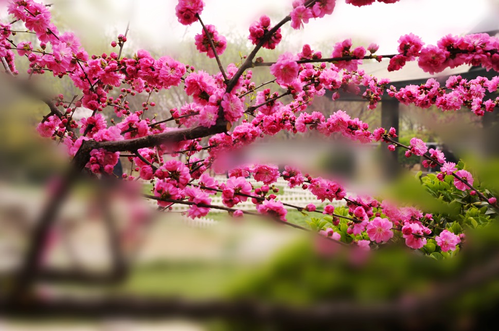 美,透过桃花,我看到是什么,房子?
