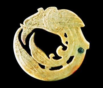 在对罗家柏岭遗址进行发掘时发现,遗址中部有个土台,土台四周挖有水沟,在南边的水沟里,张云鹏发现了这件团着身躯的玉凤文物,其姿态生动、造型优美、栩栩如生。同时出土的玉器40多件,有玉人头像、玉蝉、玉龙、玉凤、玉璜和玉管等。