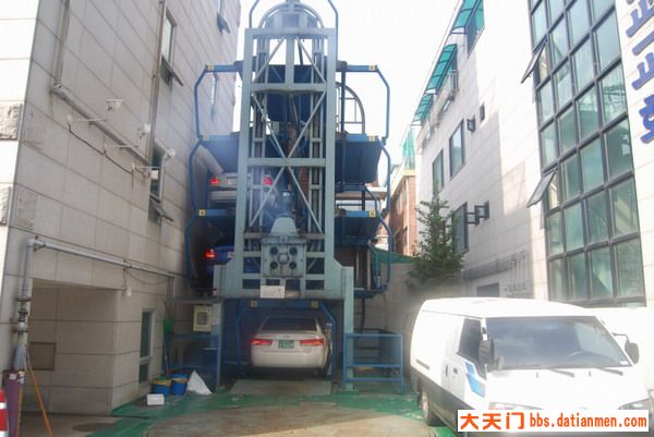 首尔有1200万人,800万辆车,所以到处都是这种立体停车位,只要输入你的密码,车就会自动从上面转下来