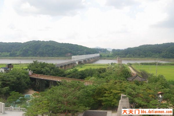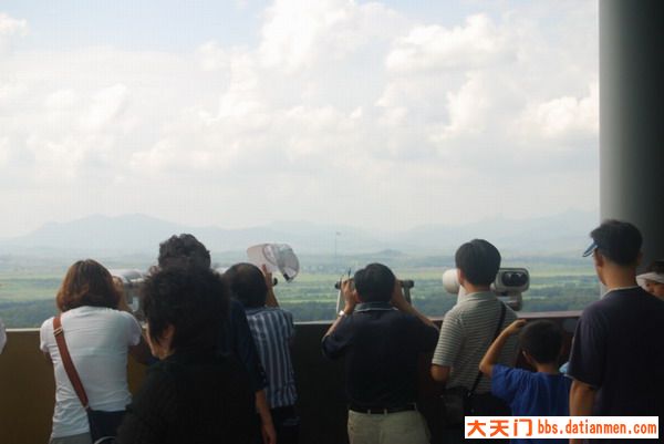 前面就是北韩,隐隐看见北韩国旗飘,国旗后面就是开城工业园