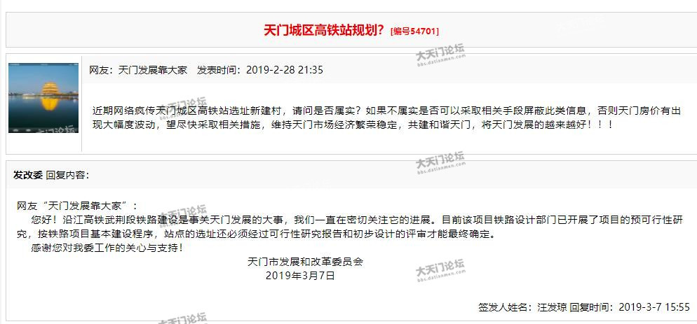 近期网络疯传天门城区高铁站选址新建村,请问是否属实?如果不属实是否可以采取相关手段屏蔽此类信息,否则天门房价有出现大幅度波动,望尽快采取相关措施,维持天门市场经济繁荣稳定,共建和谐天门,将天门发展的越来越好!!!