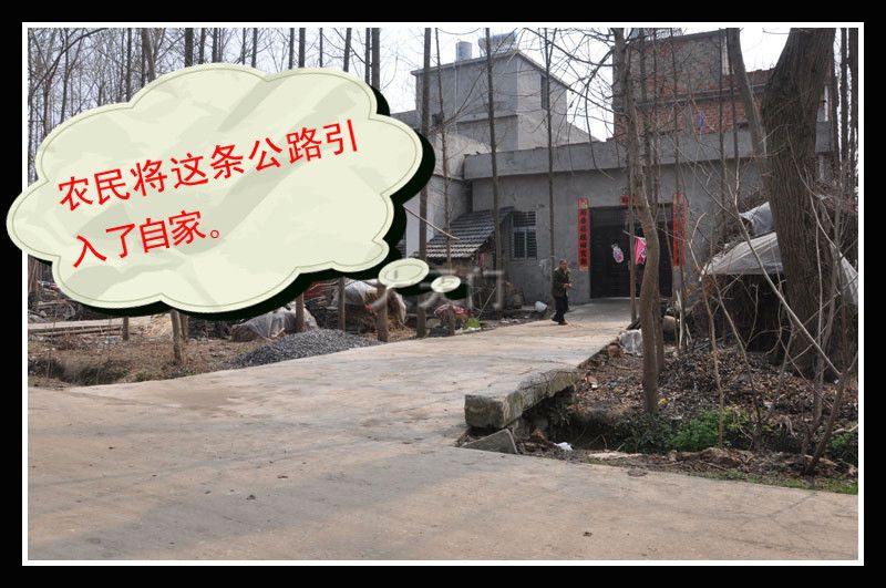 过去有一个口号,就是要致富先修路,公路通百业兴,近几年来,黄潭镇通村公路建设起色较大,100%的村通了公路。最近我去了一趟黄潭的前河村,这个村就地理位置而言确实是比较偏僻的村,地处县河南岸,北与荷沙公路相距有十几里,南与汪场、蒋场公路也相距近十里,原来进村的一条主道一下雨就是泥泞地。前几年党富民政策的春风吹进前河村,在村支书王保田的带领下,硬是将这段路变成了水泥路。谈到王保田,村民们个个都是津乐道,他虽然50多岁了,但村民只要有事,就会找他,他总是当成自己的事一样来办,老百姓极力拥护他,去年,镇里推荐一个年轻书记来换他,村民硬是是不干,还是将他接了回来,他周围的群众都住着楼房,而他自己却还住着六七十年代做的瓦房,由于他老伴年前刚去世,我们没有见到他本人。现在前河村的公路不仅进了村,而且入了户,有图可查。