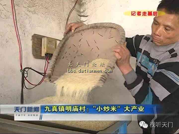 制作炒米首重米质。从2005年开始,为配合炒米产业发展,明庙村调整种植结构,推广种植了双晚糯谷,这种糯米粘性更强,品质更好,很快在周边县市打开了市场,也为炒米村提供了源源不断的优质原料。目前全村2400亩土地全部种植糯谷;村里还建起了大型糯谷加工厂,村民要加工稻谷,足不出村就能完成,已形成了产销一条龙的炒米产业链。http://mmbiz.qpic.cn/mmbiz/kTWkYsibIoch6ia5Q8xLryEpm4oTdK5mpib5RJ0ichYQicfkxEbRZiakLmPmZFDyLyclkAooicSnBmZTIsiaibRyId0zAbg/0?wx_fmt=jpeg明庙村村委会副主任付新军:我们现在已经注册了商标,成立了“天门三源糯米种植专业合作社”;今后,进行统一收购,统一包装,走进超市,面向全国,让全国人民都吃上明庙村的阴米、炒米。明庙村炒炒米的市场蛋糕越做越大,炒米越销越俏,品牌越来越响,天门的这种传统小吃已成为一种畅销美食,远销到湖南、广州等地。